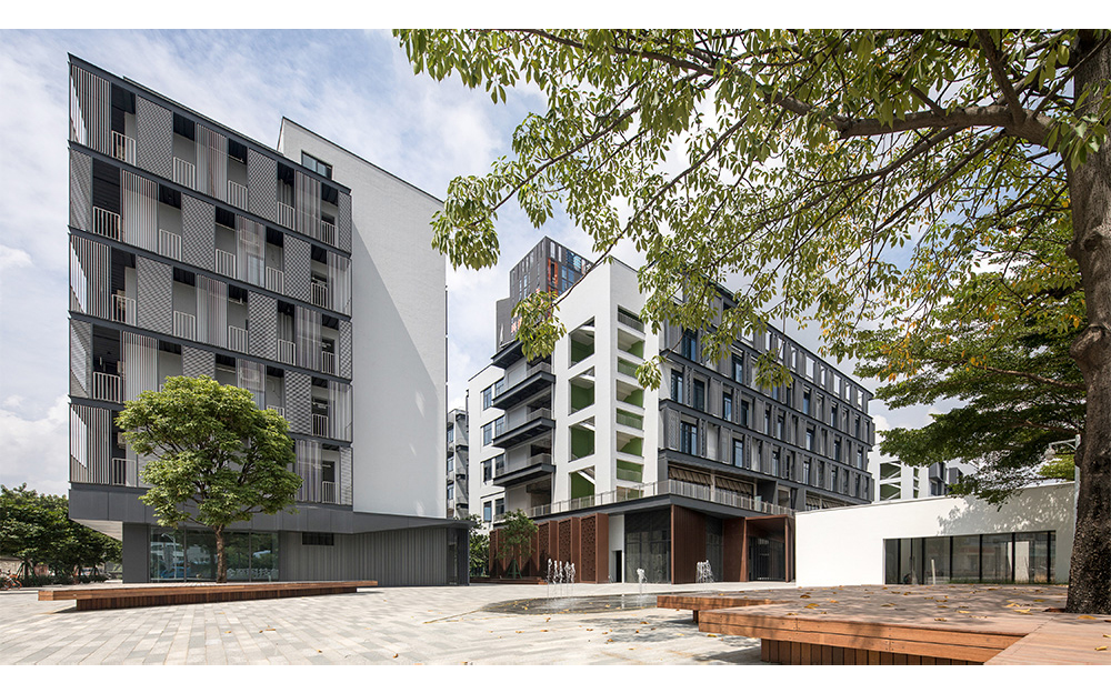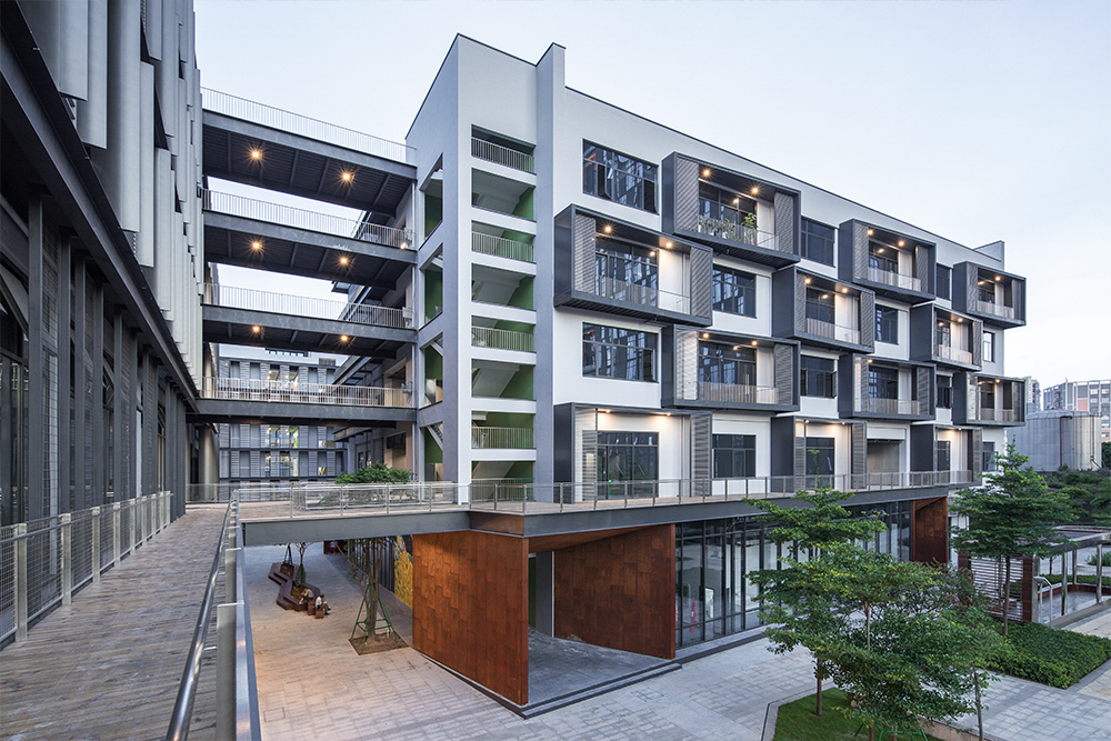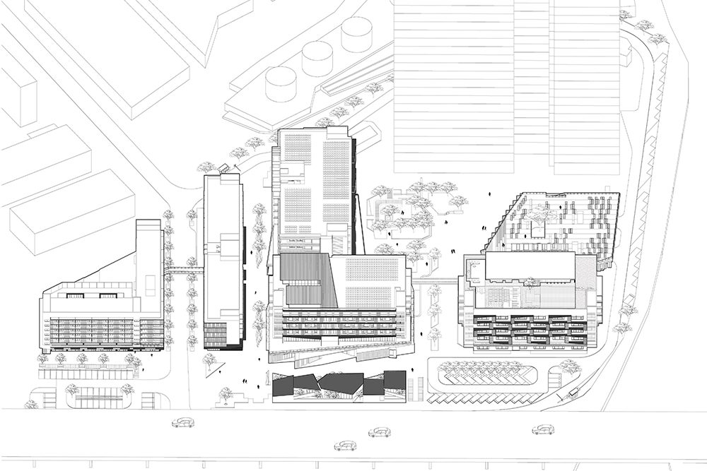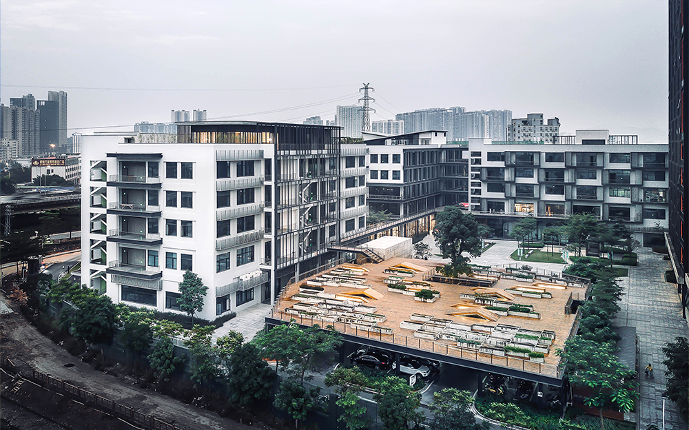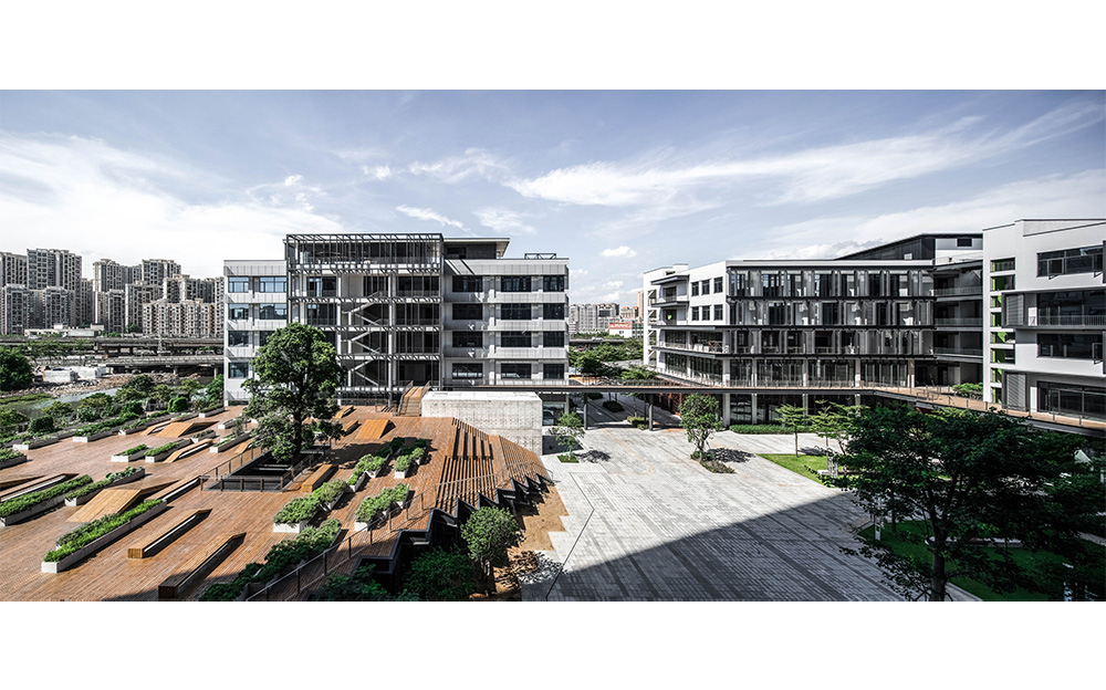 With the advantage of geography, Shajing has largely developed the low-end manufacturing industry in the past few decades. And the huge amount of factories not only destroyed the beautiful natural environment but also formed inactive urban spaces. The former industrial park is a typical large-scale and dull space for manufacture. Our design strategy of the facade renovation bases on the need of program upgrade and the consideration of human scale. Those which include the open façade with windows and cantilevered terraces, the module facade system with rhythm changes, and the zigzag layout of commercial spaces, try to create a sustainable and humanistic space with pleasant human scale. Besides, the various public programs, such as planting experience, living art, art space, organic kitchen, sport and gym, greatly enrich the site and activate the park. Meanwhile, those public programs establish more communication among people and create the connection between people and nature.