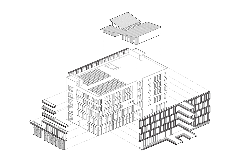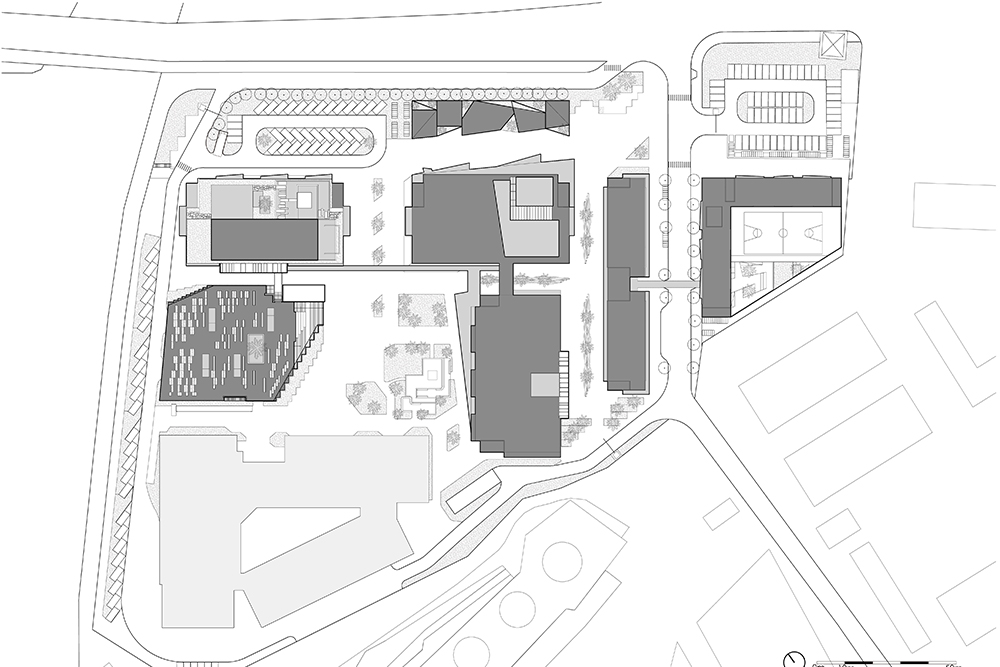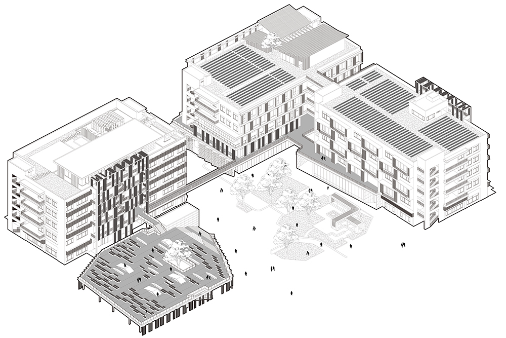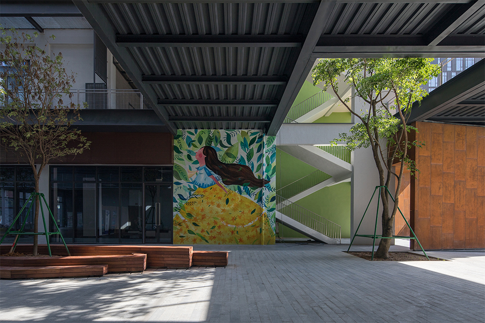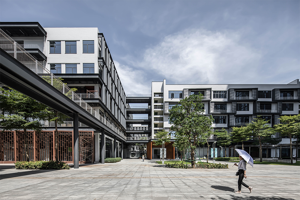 With the advantage of geography, Shajing has largely developed the low-end manufacturing industry in the past few decades. And the huge amount of factories not only destroyed the beautiful natural environment but also formed inactive urban spaces. The former industrial park is a typical large-scale and dull space for manufacture. Our design strategy of the facade renovation bases on the need of program upgrade and the consideration of human scale. Those which include the open façade with windows and cantilevered terraces, the module facade system with rhythm changes, and the zigzag layout of commercial spaces, try to create a sustainable and humanistic space with pleasant human scale. Besides, the various public programs, such as planting experience, living art, art space, organic kitchen, sport and gym, greatly enrich the site and activate the park. Meanwhile, those public programs establish more communication among people and create the connection between people and nature.