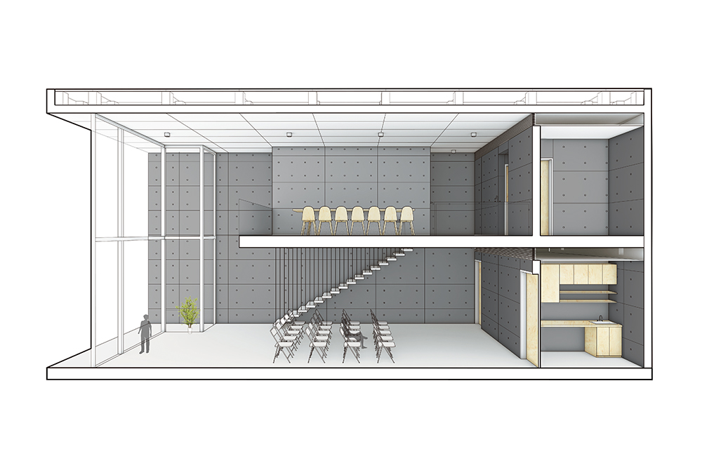 Material: Steel、Camphor pine wood、Fair-faced concrete
